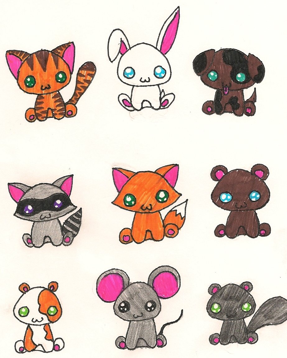 Картинки для срисовки аниме животных очень смешные и симпатичные. Рисунки можно нарисовать карандашом, а затем раскрасить красками.