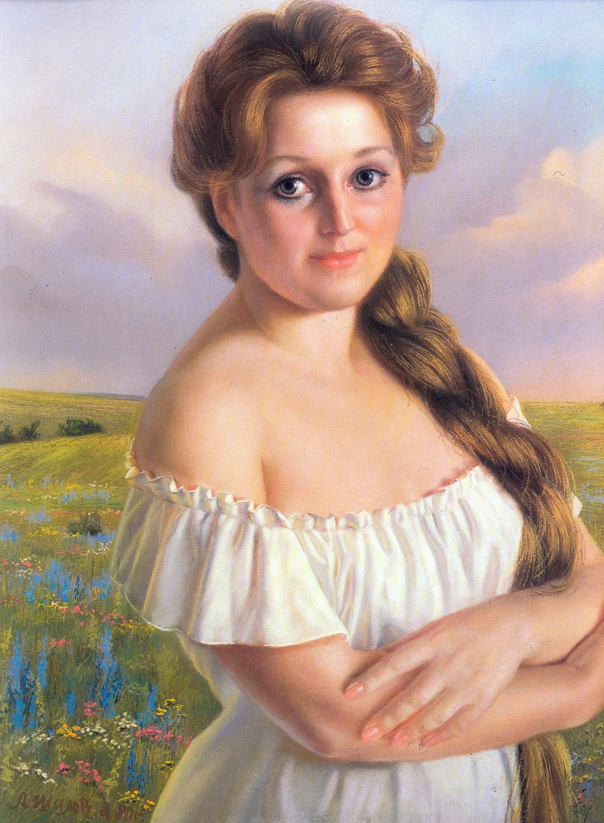 На фотографии картины художника шилова выглядят так, словно это не написанное кистью изображение, а снимок, сделанный в фотоателье. Мастер переносит нашу современницу из обыденной.