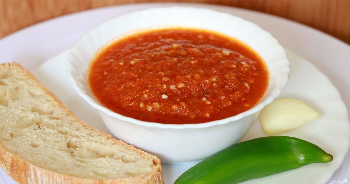 Аджика из острого перца и чеснока бе. Такая аджика подается ко многим блюдам и обязательно к запеченной на вертеле баранине.