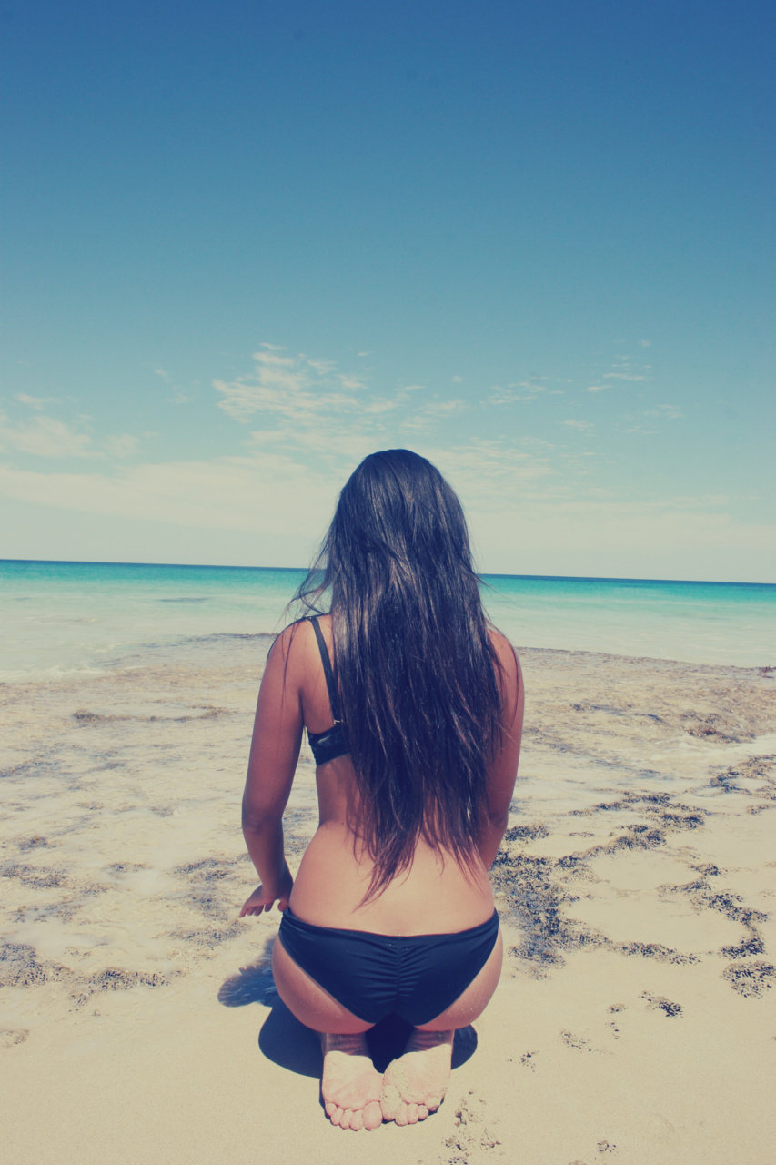 Подборка красивых фотографий брюнеток в купальниках на море со спины.