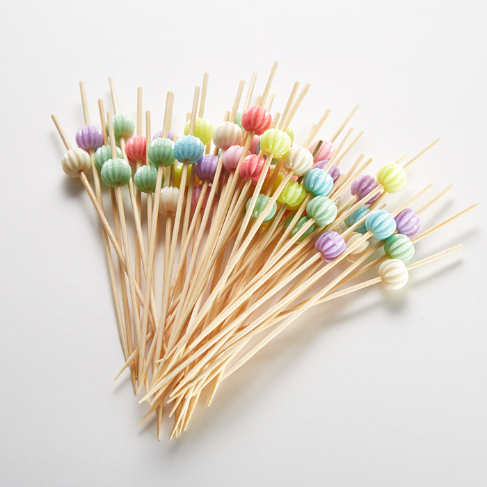 Виноград подойдет для них лучше всего, однако можно использовать также персики, клубнику и другие фрукты. Можно использовать шпажки для шашлычков или деревянные зубочистки.