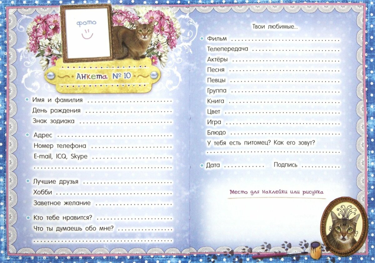 Помните школьные анкеты для девочек. Анкета будет и красивой, и прочной одновременно.