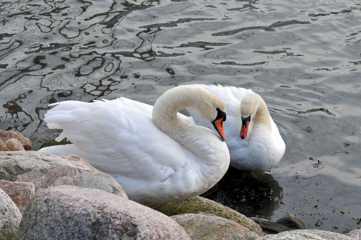 Лебедь по своей величине, силе, красоте и величественной осанке очень давно и справедливо назван царем всех водоплавающих птиц. Лебеди вечер двое романтика картина.