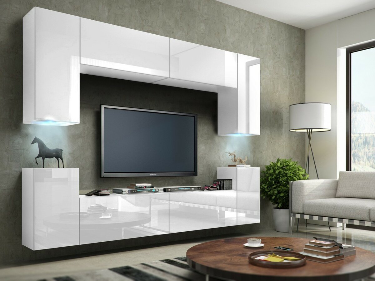 Засчет сочетания закрытых, открытых, застекленных полок выглядят интересно и не давят. Большой выбор стенок под телевизор.