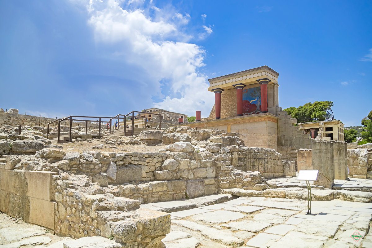 Кносский дворец неразрывно связан с одним из самых популярных древнегреческих мифов, в котором повествуется о гигантском кровожадном человеке-быке минотавре. Обе исторические структуры находятся на значительном расстоянии друг от друга.