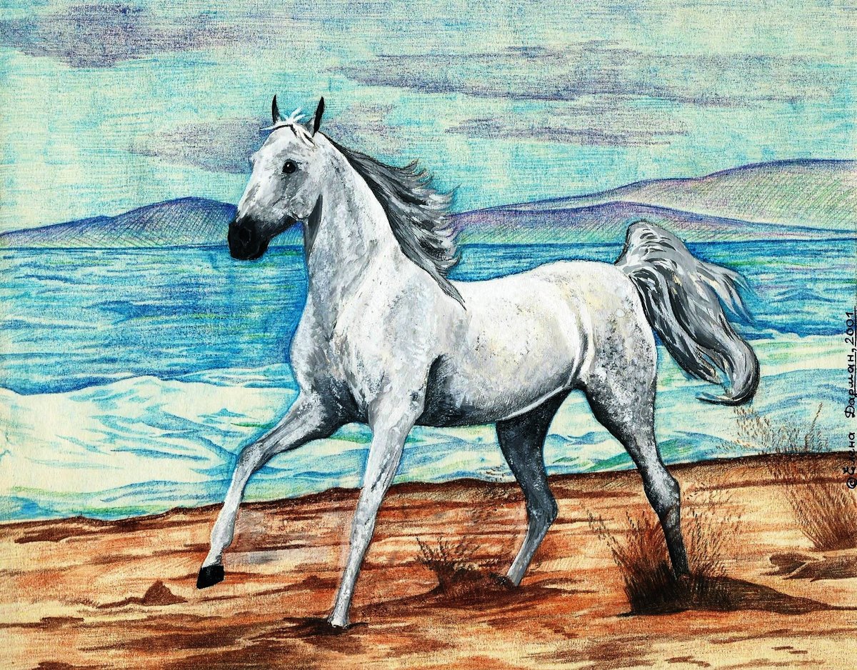 Рисовала под руководством преподавателя в школе креативного рисования. Подойдёт инструктаж и в том случае, если нужно нарисовать единорога. Учительница и соученики моего сыночка были в восторге. Проверьте внимательно, все ли пропорции рисунка лошади соблюдаются.