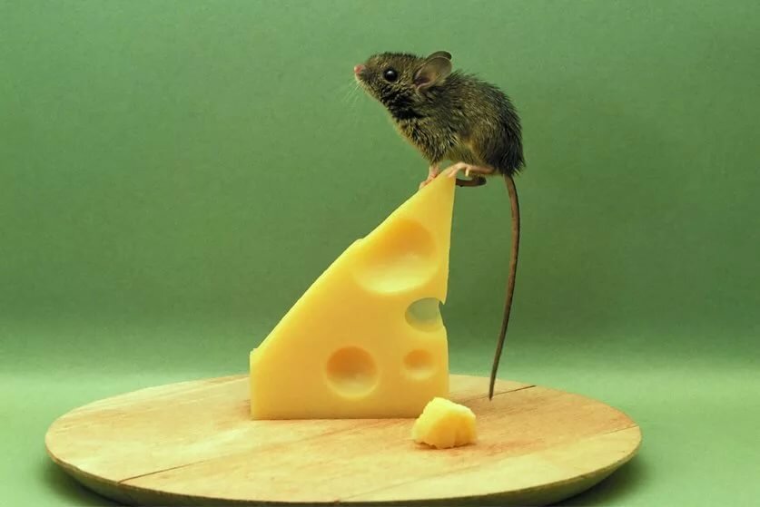 А вот веселые мышки рядом с большой головкой сыра.
