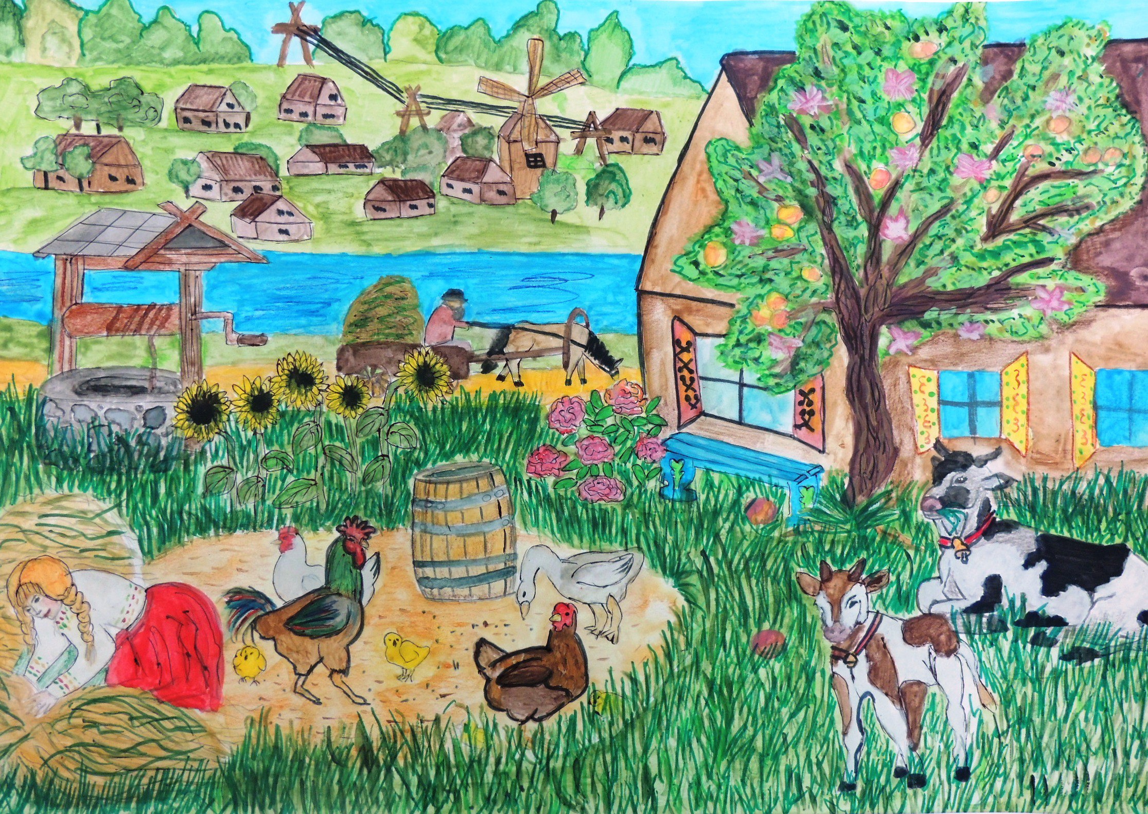 Детские картинки о природе родного края для дошкольников в детский сад, учеников в школу простыми и цветными карандашами, фломастерами, красками и гуашью.