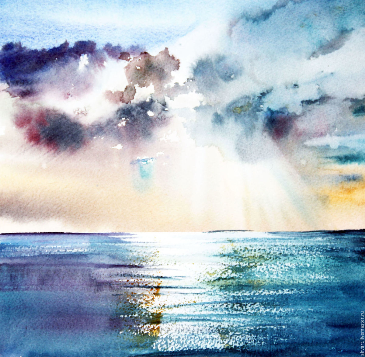 Когда будете рисовать небо и облака в технике мокрым по мокрому, не забывайте, что цвета станут светлее при высыхании бумаги.