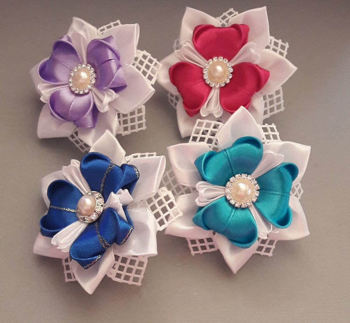 Там из них делают игрушки, браслеты и даже одежду. Снежинка канзаши из атласных лент на повязку для девочки или для другого украшения.
