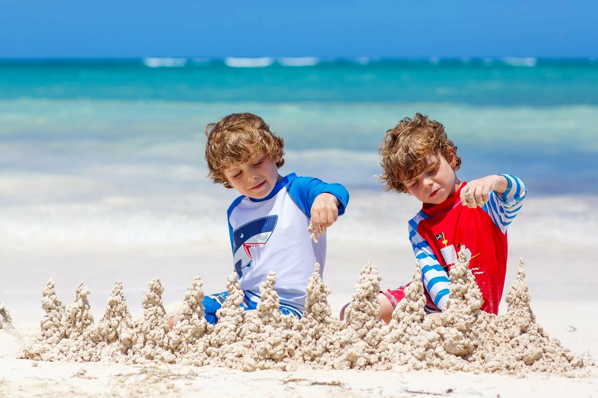 Девочка играет песком на пляже. В нашей тематической подборке мы покажем снимки с моря.