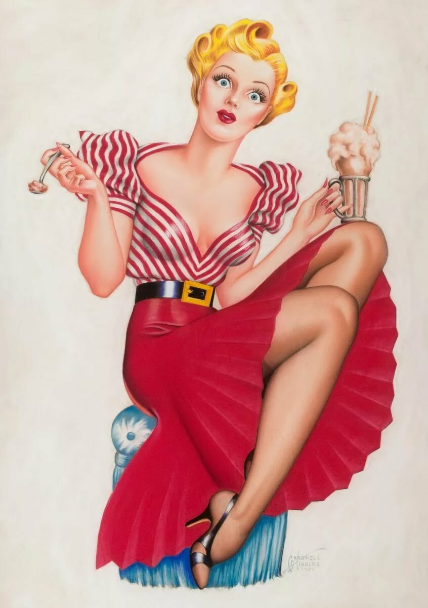 В этом стиле изображался собирательный образ идеальной девушки, которая может не только вкусно приготовить, но еще и выглядит очень сексуально.