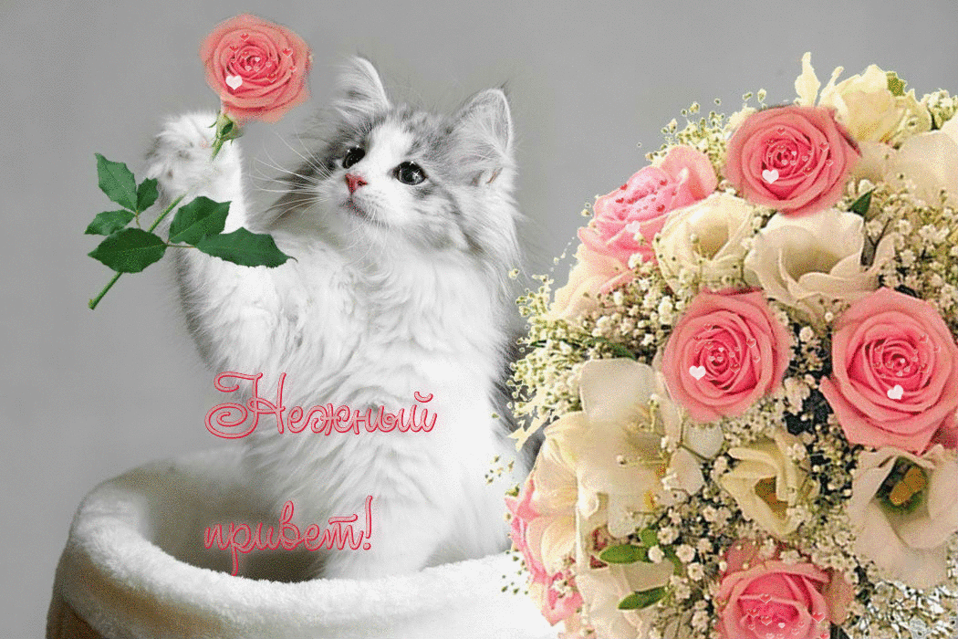 Привет - скачать красивые картинки с надписями. Пушистый приветик моим друзьям.