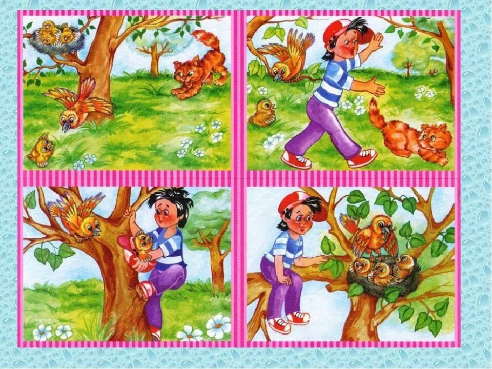 Другое дело серия сюжетных картинок. Взрослый просит ребёнка разложить сюжетные картинки в логической последовательности, ответить на вопросы полным ответом и самостоятельно составить рассказ. Нравится показать список оценивших.
