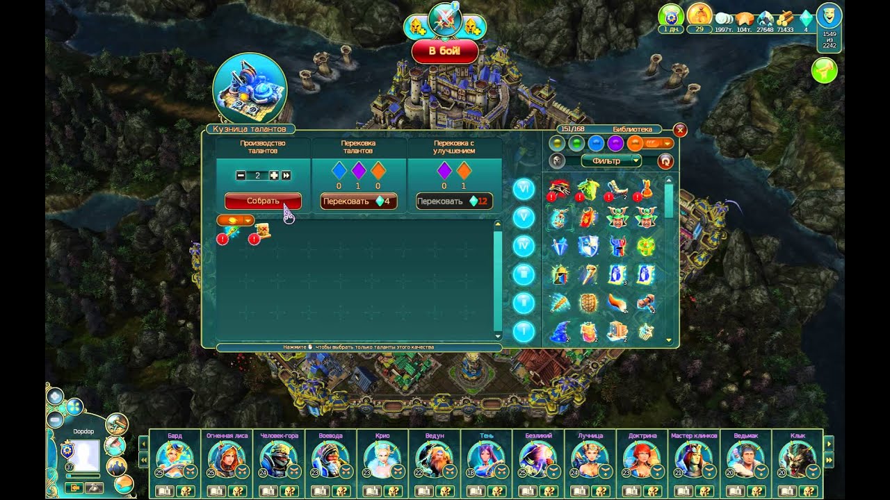 Легендарные таланты это новый этап развития героев. Каждого героя приходится открывать по отдельности, и отдельно же надо развивать его умения.