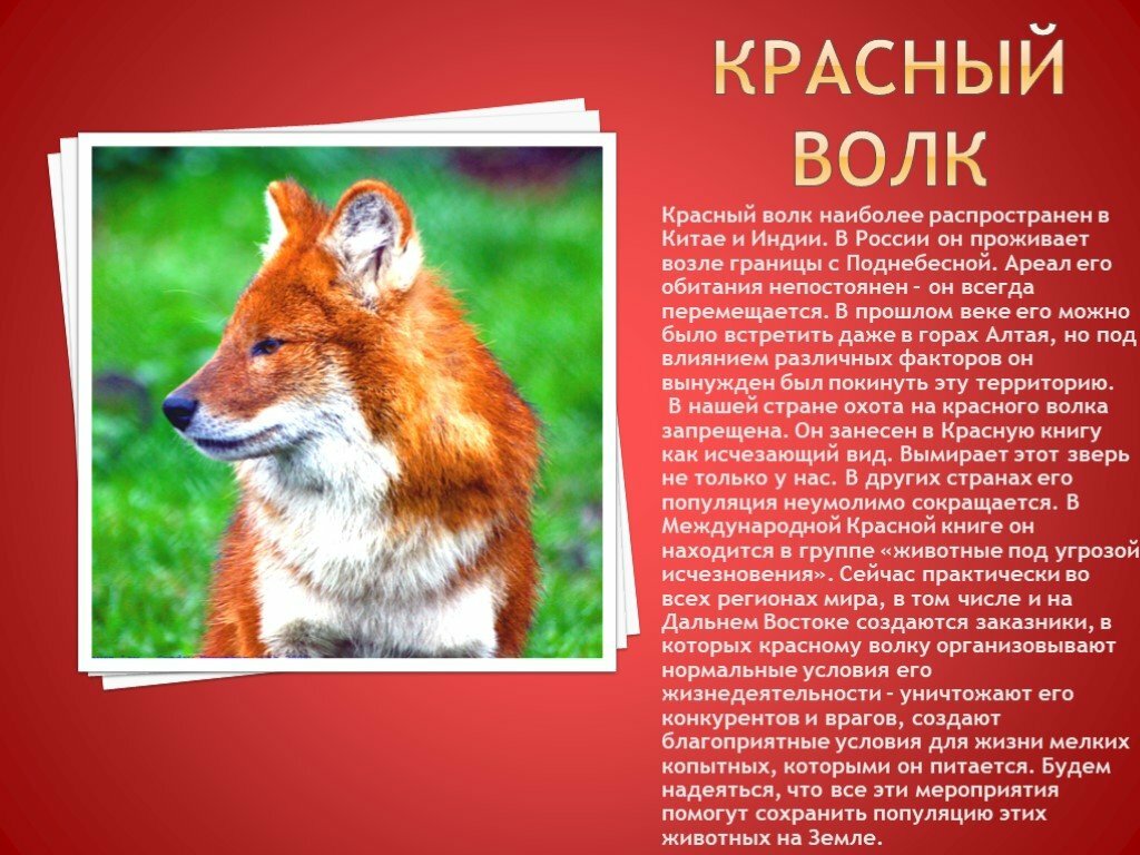 Делается это для того, чтобы все знали об этих животных и старались защитить их, не причинять им вреда. Однако список животных и растений, находящихся под угрозой вымирания, пополняется каждый год. С каждым годом этих животных становится все меньше на нашей планете, это самые редкие виды которые занесены в красную книгу.