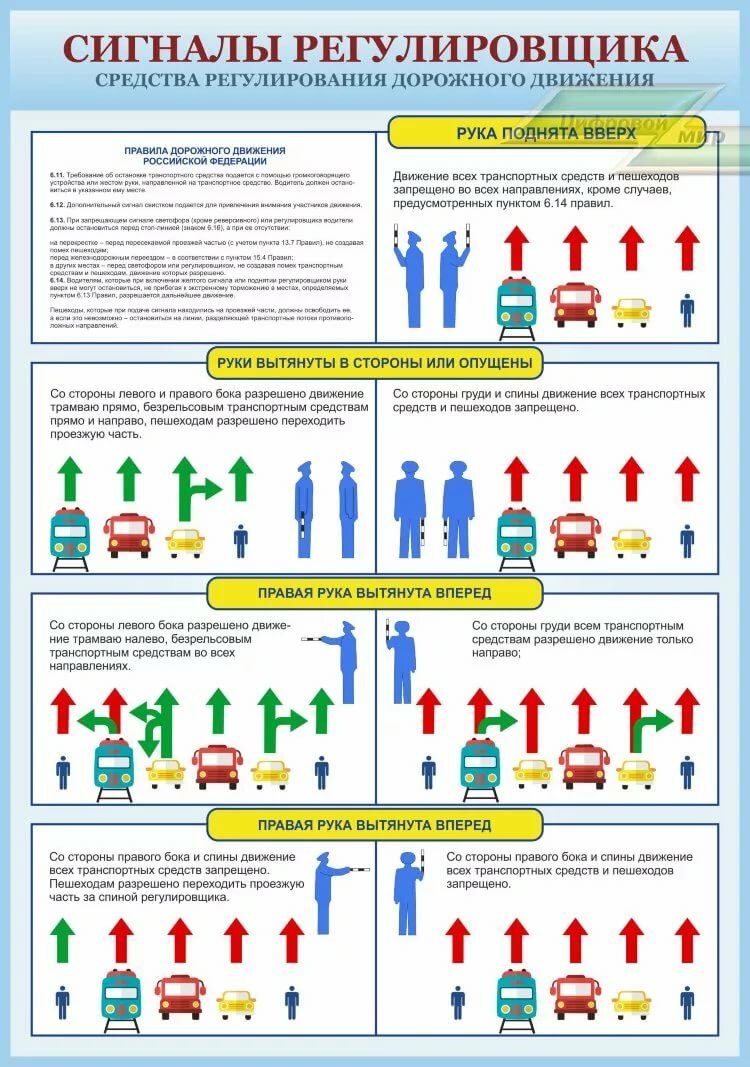 Рука поднята вверх всем автомобилям и пешеходам движение запрещено. Все знаки регулировщика в картинках с описанием.
