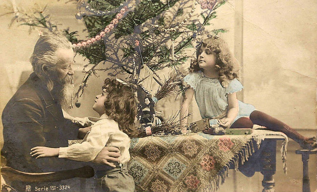 Тута были открытки новогодние как-то, так там почти на каждой фотке дети шампанское и вино пьют. Дореволюционные рождественские открытки.