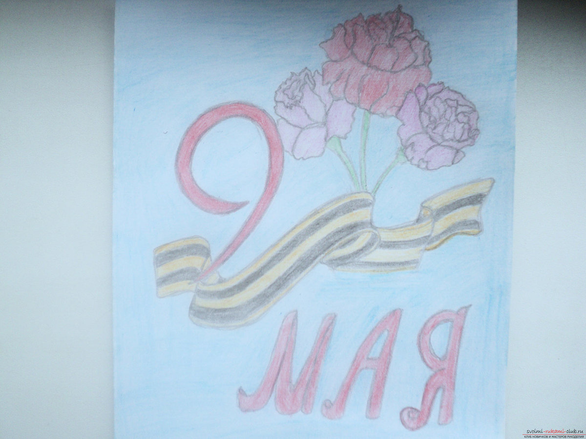 Урок покажет вам, как поэтапно и карандашом нарисовать красивую открытку для ветеранов.