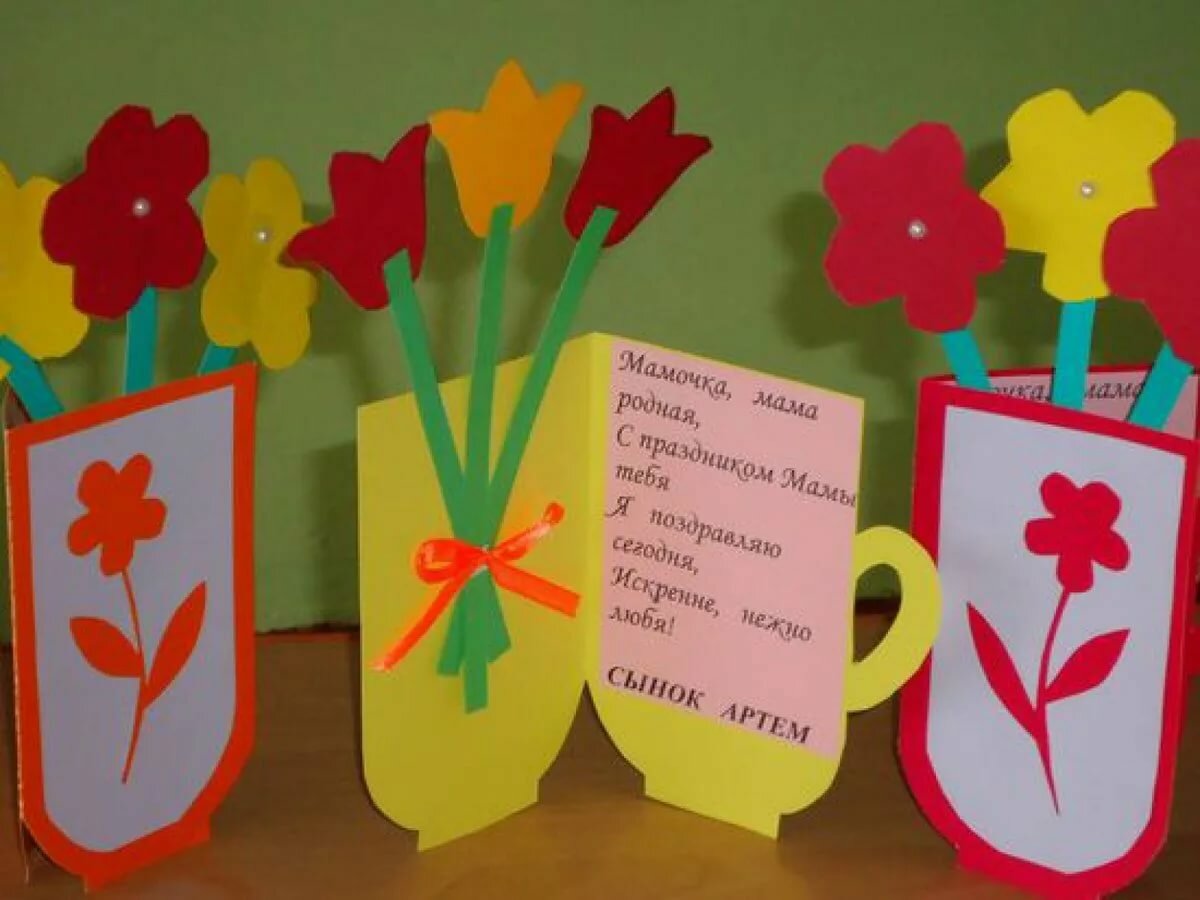 Маленькие мастера будут горды своими творениями. В младшей группе создаются более простые цветы, открытки. Мама самый близкий и родной человек она играет важнейшую роль в жизни ребенка.