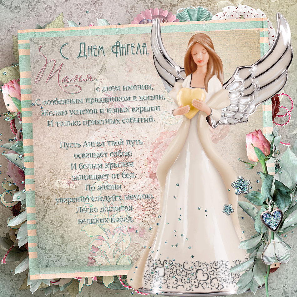 Пусть ваша мудрость, открытость и уверенность в себе всегда будут вам помогать в любых ситуациях. Татьяна, поздравляем вас с именинами. Открытка с днем ангела татьяна.