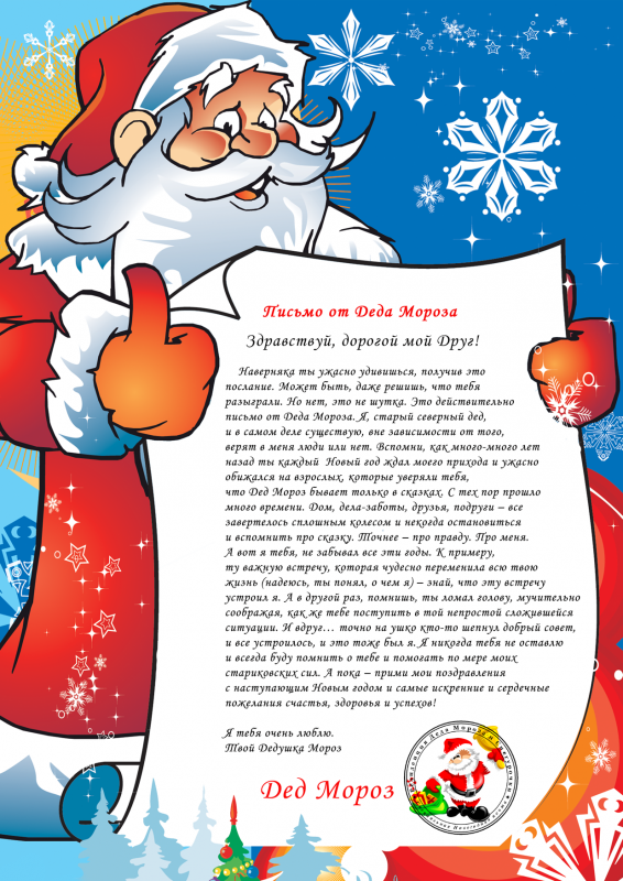 Наш волшебник и сказочный друг, телеграмму тебе с поздравлением отправляем в великий устюг. Также желаю в грядущем году сменить уже порядком износившиеся сани на электромобиль самой последней модели.