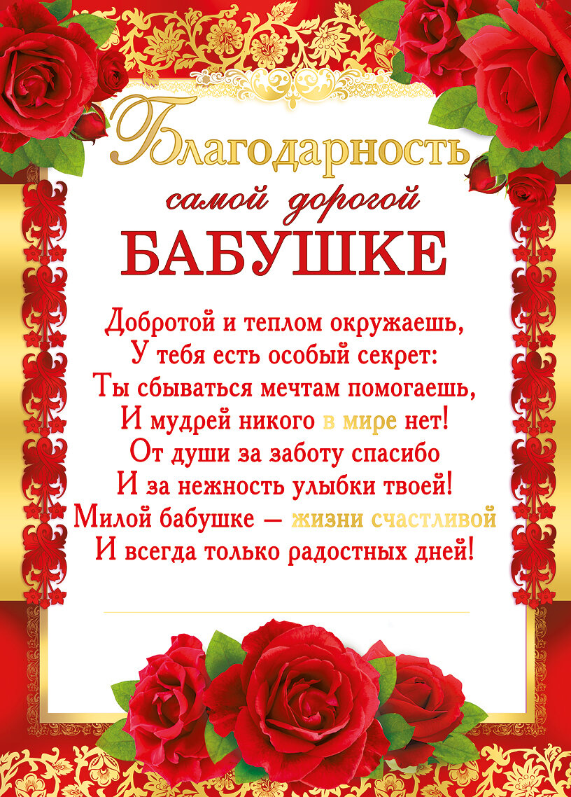 И как мама и бабушка ты нам очень нужна. Счастья и добра познать желаю и о твоем здравии молю.