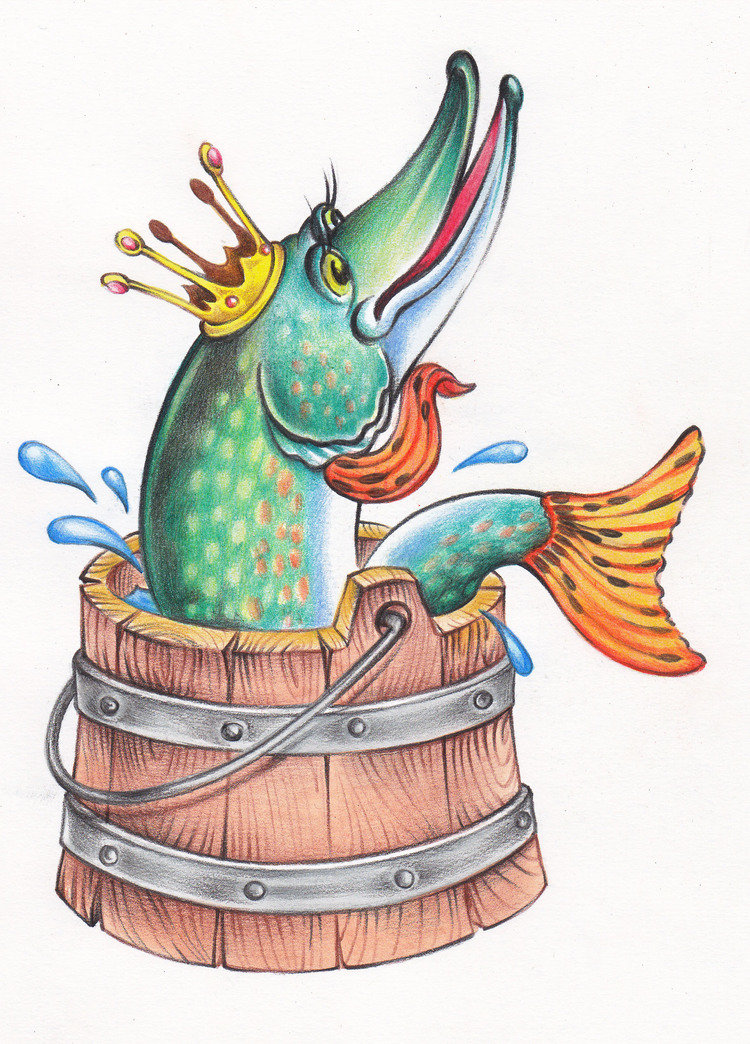 Картинка щуки - фотографии и фото. Картинки для детей для раскрашивания. Детский рисунок про емелю, который играет на гармошке, сидя на печке.