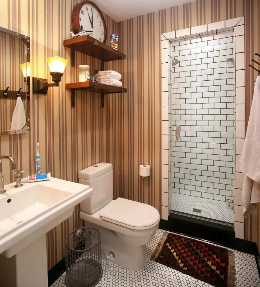 При объединении ванной и туалета могут получиться большие пространства, а это значит, что там можно реализовать множество интересных идей.