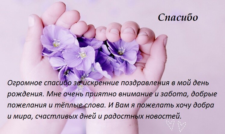 Спасибо вам родные мои, за ваши поздравления и за то, что вы есть в моей жизни. Спасибо за пожелания и теплые слова, за подарки и за хорошие. Твое поздравление было наполнено искренностью и добротой, и это очень важно, ведь тогда слова действительно обретают смысл. Спасибо за внимание и приятные слова, они мне как никогда сегодня греют сердце и дарят радость.