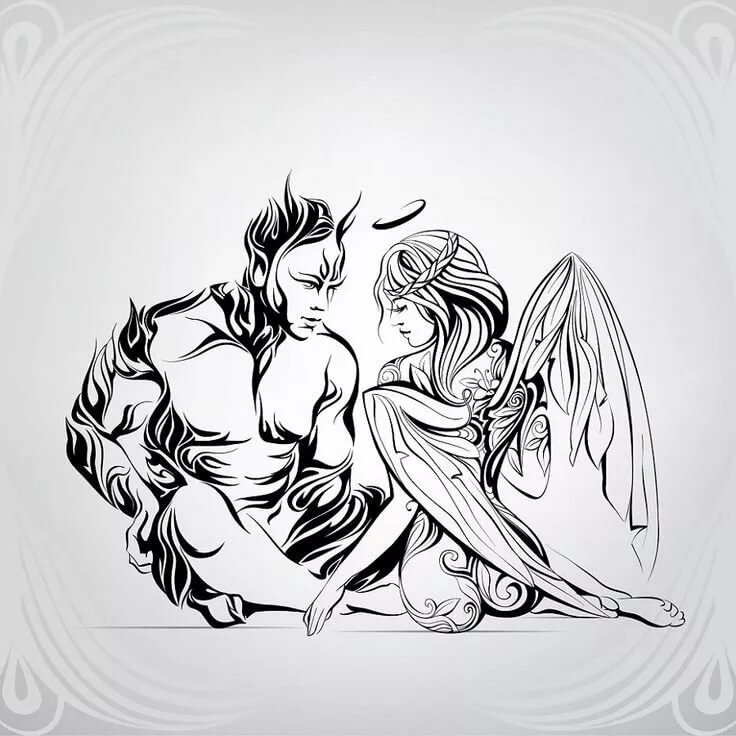 Тату ангел и демон символизирует собой вечное противостояние добра со злом.