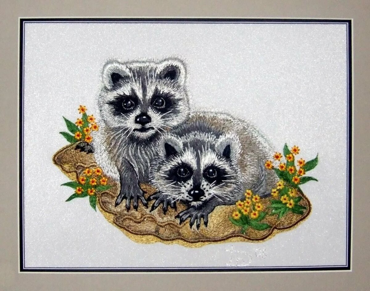 Все схемы для вышивки крестиком найдены в интернете и объединены в этом блоге. До встречи с енотами меня страшно пугал бэкстич, но в этой работе он принес одно удовольствие.